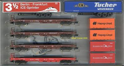 | Description: | 2 Cars loaded with removable truck trailers, 2 cars loaded with 20ft containers |