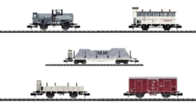 Model Details Model: Minitrix 15122 Status: Era: Era 2 Description: Freight Car Set Livery: Comments: Model Length: Model Weight: Weight: Max. Speed: Number: 1 IDs: 180