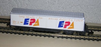 Model Details Model: Roco 25171 Status: Era: Epoch V Description: Sliding Wall Car - "EPA" Livery: SBB Comments: Model Length: 9.1 cm Model Weight: Weight: Max. Speed: Number: 1 IDs: 233